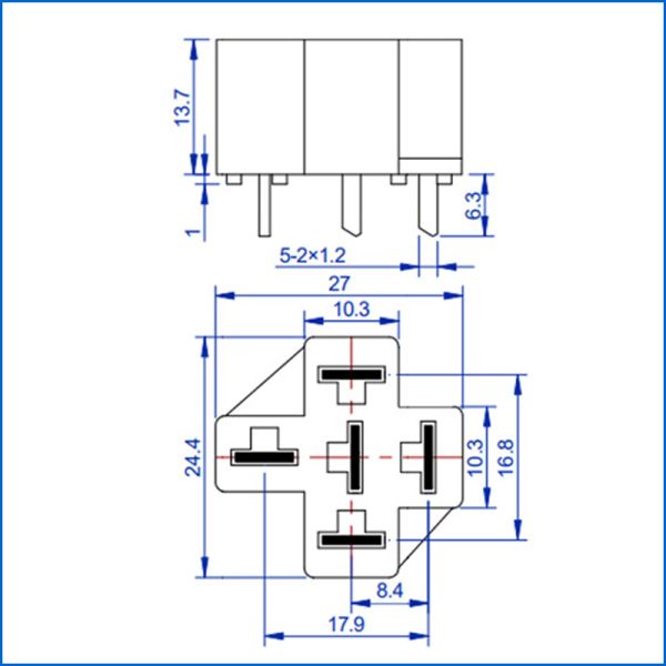 The 5 pin relay socket is a molded relay base that can be used with most standard and change over relays. Simply insert 4 or 5 pre-wire terminals into the 5 pin molded relay housing and wire the bases directly to your vehicle's harness. Since the relay socket can be used with most standard relays, it is useful and applicable in many applications and projects. The 5 pin relay socket is especially useful when replacing existing relay sockets or when building relay harnesses. The base of the relay socket is manufactured with a durable, impact-resistant material to sustain a long lifespan.This socket is a plum -type universal needle -footed 40A car relay welded PCB -type base with a spring, which can be directly inserted into the line board. It is suitable for HFV4 JD1912 JD1914 40A automotive relay.